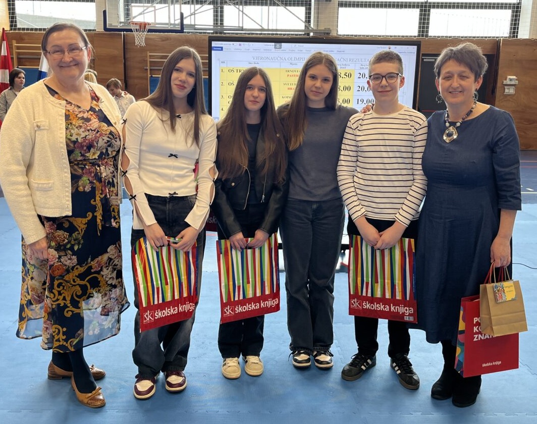 Ekipa naše osnovne škole pod vodstvom mentorice Ljiljane Mišak pokazala je zavidno znanje i osvojila prvo mjesto. Pobjednički tim čine: Hana Hrman (8.b), Lea Šuart (8.b), Vida Magdalenić (7.a) i Roman Hrkec (7.b). Nakon višegodišnjih sjajnih rezultata, trud i uloženo vrijeme naših „olimpijaca“ ponovno su se isplatili, čime su osigurali plasman na državno natjecanje. Ponos naše župe upotpunile su i učenice Medicinske škole Varaždin, Karla Mlakar (2.d) i Karla Magić (2.d) koje su također osvojile prvo mjesto u kategoriji srednjih škola pod vodstvom mentorice Nensy Zelić. Ovim vrhunskim rezultatom našu će Varaždinsku biskupiju na državnoj razini predstavljati čak šest učenica i dvije mentorice iz naše župne zajednice! Državno natjecanje održat će se u Puli od 20. do 22. travnja.